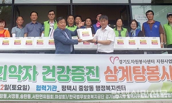 평택어울림합창단은 중복을 맞아 중앙동 취약계층과 독거노인의 여름철 건강증진을 위한 삼계탕 나눔 봉사를 7월 22일 중앙동 행정복지센터에서 진행했다.