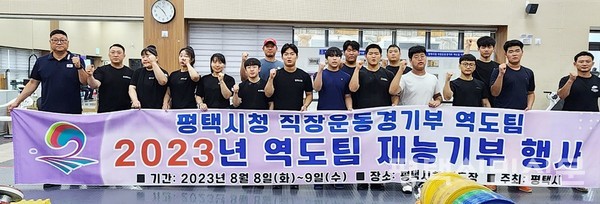 평택시청 직장운동경기부 역도팀이 8월 8~9일 이충레포츠공원 역도훈련장에서 중·고등학교 역도부 학생 14명을 대상으로 재능기부 행사를 진행했다.