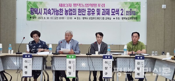 제83차 평택농업희망포럼이 8월 30일 평택시 로컬푸드재단 2층 교육실에서 ‘평택시 지속가능한 농업의 현안 공유 및 과제 모색 2’라는 주제로 개최되었다.