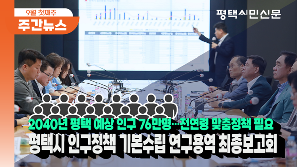 ▼▼ 아래 링크를 통해 영상을 시청하실 수 있습니다. https://youtu.be/dAGxS47flTM 관련기사 ‘재단법인 한광동문장학회’ 빛나는 출범 [기획취재] 미군기지 주둔 이후 평택 지방자치 어떻게 확립할 것인가 3 평택 인구 2040년 76만명…전연령 맞춤정책 필요 키워드 #주간뉴스 #위클리뉴스 #위클리이슈 #평택시민신문 #평택 #인구정책연구용역 #최종보고회 #기획취재 #미군반환토지 #재오염 #대응 #한광동문장학회 평택시민신문 webmaster@pttimes.com 다른기사 보기 저작권자 © 평택시민신문 무단전재 및 재배포 금지 당신만 안 본 뉴스 한화이글스 간 라온고 하동준 “벅찬 기쁨과 책임감 느껴” 국힘 조강특위, 평택을 등 ‘사고당협’ 지원자 면접 [기획] 녹조와 심각한 수질 오염에 신음하는 평택호에 바닷물을… 21일 ‘일상 속의 예술, 예술 속의 일상’ 전시 개막 오색으로 물든 정원에서 느끼는 가을 정취 김현정, 굽네치킨 ‘정무수석 외압’ 의혹 제기 “중국 서해 구조물 문제를 혐중으로 왜곡 안 돼” 한화이글스 간 라온고 하동준 “벅찬 기쁨과 책임감 느껴” 댓글삭제 삭제한 댓글은 다시 복구할 수 없습니다. 그래도 삭제하시겠습니까? 비밀번호 닫기 기사 댓글 0 댓글 접기 댓글 내용입력 비회원 로그인 이름 비밀번호 댓글 내용입력 댓글쓰기 계정을 선택하시면 로그인·계정인증을 통해 댓글을 남기실 수 있습니다. 회원 로그인 비회원 글쓰기 이름 비밀번호 자동등록방지 로그인 옵션 창닫기 주요기사 예산 고갈로 산모신생아 건강관리 차질 우려 쿠팡 택배노동자 사망…평택지청에 특별감독 촉구 평택지역 도의원들 도의회 행감에서 활약 13년간 5만7400장, 한광중이 나른 ‘따뜻한 겨울’ 고덕10유치원·고덕1중학교 신설 평택항만공사, 95kW 규모 ‘햇빛발전소’ 조성