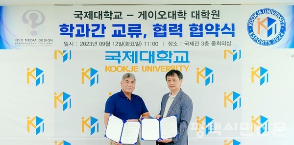 국제대학교 e스포츠학과(학과장 김성철 교수)는 9월 12일 일본에서 가장 오래된 사립대학인 게이오기즈쿠(慶應義塾)대학교 대학원(이하 게이오대학원) 미디어 디자인학과와 학과간 교류협력을 위한 협약을 체결했다.