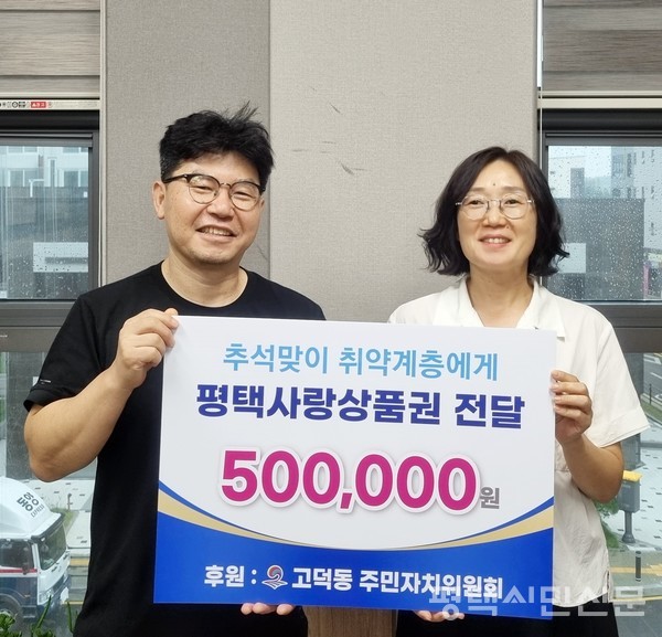 고덕동 주민자치위원회는 9월 20일 추석을 맞아 어려운 이웃에게 전달해 달라며 평택사랑 상품권(50만원 상당)을 고덕동 행정복지센터에 기부했다.