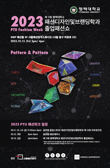 평택대학교 패션디자인및브랜딩학과는 10월 11일 ‘2023 PTU 패션위크(PTU Fashion Week)’를 서울 동대문 DDP패션몰에서 개막해 13일까지 진행한다.