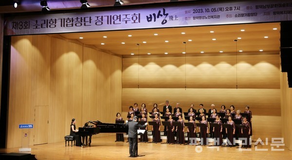 평택팽성노인복지관 소리향기합창단 제3회 정기연주회가 10월 5일 평택시남부문화예술회관 대공연장에서 성황리에 마쳤다. 소리향기합창단은 60세 이상 어르신들로 구성된 합창단으로 2023년도 평택복지재단 공모사업에 선정돼 운영되고 있다.