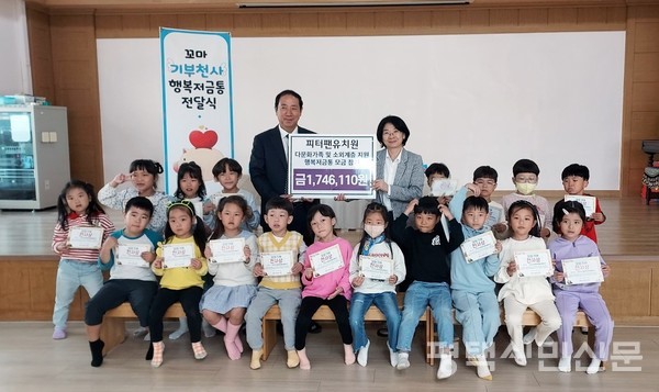 박상수 피터팬유치원 이사장은 “행복저금통 모금을 통해 따뜻한 나눔문화 확산에 기여하게 돼 기쁘다”며 “후원금이 필요한 곳에 잘 전달되어 어려운 이웃에게 힘이 되었으면 좋겠다”고 말했다.