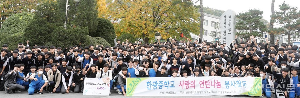 한광중 연탄천사들이 올해에도 지역사회에 훈훈한 온기를 전했다. 2013년 한 개 학급과 운동부가 시작한 연탄나눔은 2015년에는 전교생의 봉사로 커졌고 8년간 사랑의 연탄 나눔을 매년 이어왔다.