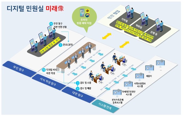 방문민원 대기시간 최소화를 위해 온라인 예약제를 도입하고 카카오톡, 네이버 등 민간 앱과 연계해 국민이 별도 앱을 설치할 필요 없이 이용할 수 있도록 할 계획이다.