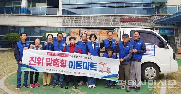 진위 맞춤형 이동마트는 제철과일·라면·조미김 등 식료품과 휴지·파스 등 다양한 물품을 트럭에 싣고 12개 마을을 방문해 거동 불편으로 장을 보기 어려운 독거노인과 취약계층 이웃에게 무료로 지원하는 사업이다.