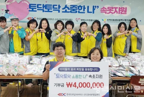 이날 전달은 평택시자원봉사센터와 한국도로공사서비스(주) 수도권서부영업센터 행복나눔봉사단이 함께 진행했으며 행복나눔봉사단 회원들은 아동들에게 전달할 속옷을 포장하고 손편지를 적었다.