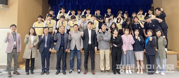 제4기 수료식에서는 학생들이 촬영한 도제학교 현장실무교육 1일 브이로그 시청, 소감 발표, 참여 기업에 감사패 전달, 김기수 평택시민신문 대표 특강 ‘지역언론과 지역사회의 행복한 소통’ 등이 진행됐으며 도제학교 프로그램에 참여한 기업 8곳의 임직원들이 함께했다.