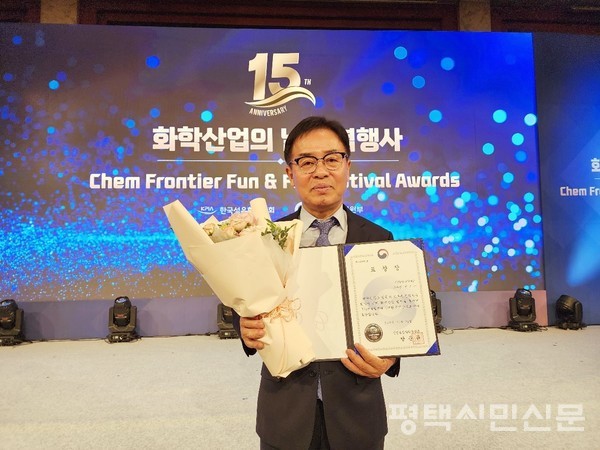 이날 수상은 화학산업에 종사하며 실리콘 소재 국산화와 경쟁력 강화, 화학산업 발전에 지속적인 투자와 기술력 향상에 이바지한 점을 인정받아 이뤄졌다. 장진수 부사장은 “ESG에 적극 관심을 가지고 친환경 및 사회적 가치 실현을 위한 기업이 되도록 최선을 다하겠다”며 “세계시장에서 경쟁력을 높이고 강한 중견기업으로 성장해 지역 균등발전에도 기여할 것”이라고 수상 소감을 밝혔다. ㈜에이치알에스는 팽성읍 추팔리에 평택공장을 두고있다.