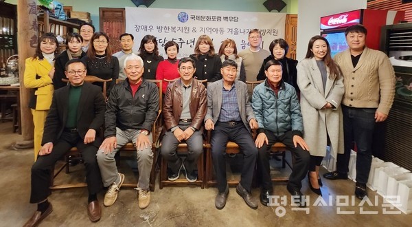 문화포럼 벽우당은 문화를 통해서 지역사회의 공익과 복지 증진에 주력하는 민간단체다. 유범동 대표는 “우리는 주위의 어려운 이웃과 문화를 향유하고 기부문화를 확산하기 위해 꾸준히 노력해왔다”며 “오늘 기부로 장애 아동과 돌봄이 필요한 아동을 관리 운영하는 시설에 조금이라도 도움이 되었으면 하는 바람”이라고 말했다.