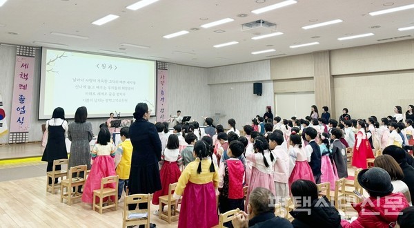 평택고덕유치원(원장 민정임)은 지난해 12월 28일 강당에서 제3회 ‘감사와 존경의 세책례 졸업식’를 개최했다.