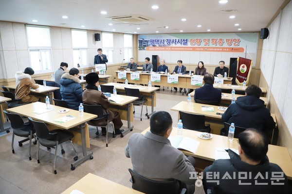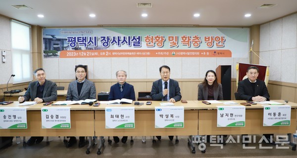 사단법인 평택시발전협의회가 지난해 12월 21일 평택시남부문화예술회관 세미나실에서 ‘평택시 장사시설 현황 및 확충 방안’을 주제로 토론회를 진행했다. 박성복 평택시사신문 사장이 좌장을 맡은 이날 토론회에서는 급속한 고령화로 인한 노인 인구 증가와 화장 선호의 장례 문화 확산, 코로나 팬데믹 이후 화장시설의 필요성 증가로 요구되는 ‘평택시 장사시설 확충 방안’을 함께 고민하고 대안을 마련하기 위한 다양한 논의가 이뤄졌다. <평택시민신문>은 이날 도출된 장사시설의 필요성과 확충 방안을 시민과 공유하고자 한다.