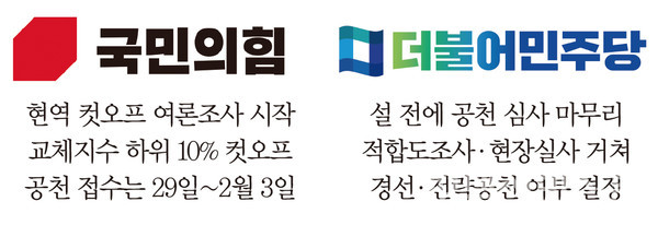 이어 31일부터 2월 4일까지 후보자 면접을 진행한 뒤 5일부터 심사 결과를 발표할 예정이다. 이때 지역구별로 현역을 포함해 경선에 출마할 예비후보들이 정해지고 컷오프 대상자, 경선 여부, 전략공천 여부 등을 결정하게 된다.