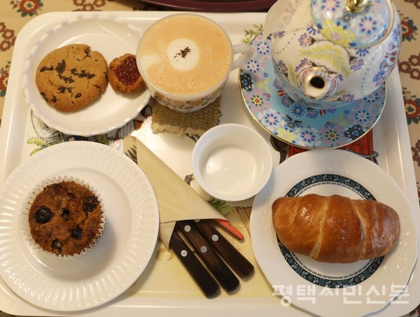 카페라테와 함께 누스보이겔, 소금빵, 브레첼, 동밀두유초코칩쿠기, 첼시번, 두부시나몬쌀베이글, 두부쌀베이글, 라즈베리쿠키, 블루베리머핀을 하나씩 먹어본다. 동물성 원료를 사용하는 기존의 빵들과는 확연히 다른 맛이다. 물리지 않고 계속 먹을 수 있는 담백함이 입안에서 느껴진다. 씹으면 씹을수록 재료 본연의 맛이 입안으로 퍼져 나간다. 그리고 동시에 그 맛과 빵에서 흘러나오는 구수한 향이 입과 코로 서서히 스며 들어온다. 다른 의미로 입안을 자극하는 강한 맛이다. 한마디로 맛있는 빵이다.