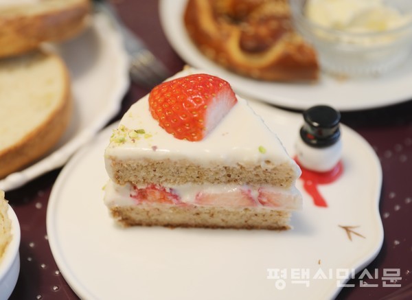 또 이날 특별 메뉴로 쌀로 만든 딸기 케이크를 선보였는데 평택 쌀브랜드인 ‘슈퍼오닝’으로 만든 케이크다. 연두부, 메이플시럽, 코코넛 오일을 첨가해 맛을 더했다.