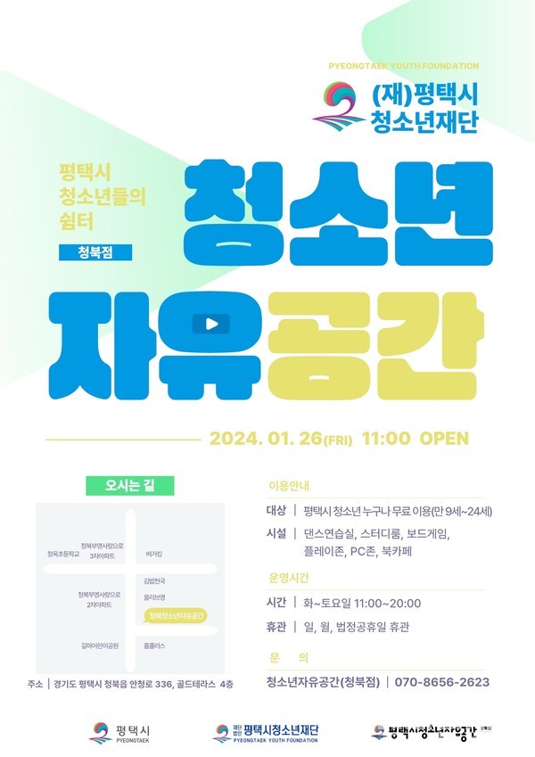 청소년 자유 공간 청북점이 1월 26일 문을 연다.