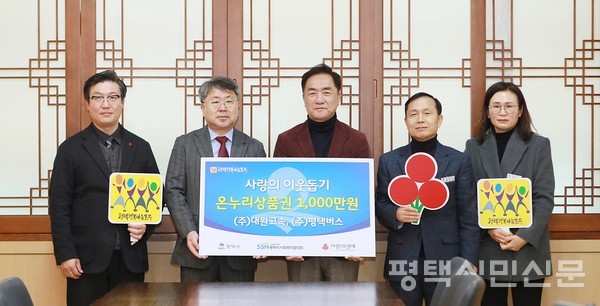 ㈜대원고속·㈜평택버스는 1월 23일 설 명절을 맞아 온누리 상품권 1000만원을 평택행복나눔본부에 전달했다.