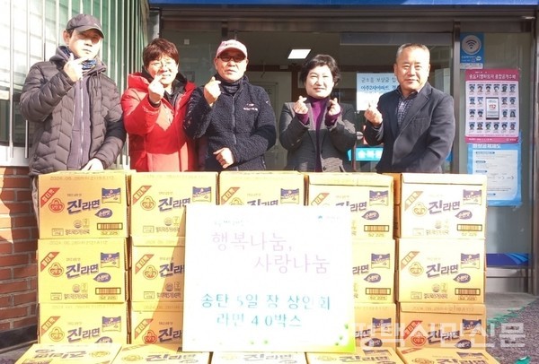 송탄5일장상인회는 1월 4일 어려운 이웃에게 전해 달라며 라면 40상자를 송북동 행정복지센터에 기부했다.