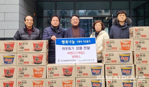 지산동 통장협의회는 1월 18일 저소득층 가구에 전해 달라며 라면 30상자를 지산동행정복지센터에 기부했다.
