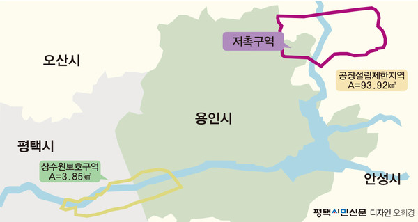 지난해 3월 정부가 발표한 용인 이동·남사 첨단 반도체 국가산단 부지(7.1㎢)의 약 17%에 달하는 남사읍 1.22㎢가 송탄상수원 공장설립 승인지역에 포함돼 있다, 반도체 관련 업종을 포함한 ‘폐수 배출 사업장’이나 ‘유해화학물질 영업허가 대상 사업장’은 공장설립 승인 지역에 입주할 수 없다.