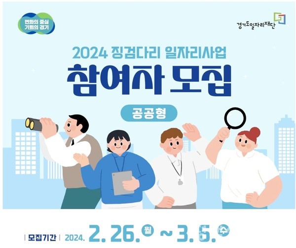 경기도와 경기도일자리재단이 경력 형성형 일자리 창출 지원사업인 ‘2024년 징검다리 일자리 사업’의 공공형 참여자를 모집한다.