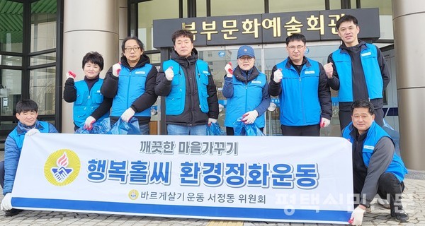 서정동 바르게살기운동위원회는 2월 24일 평택북부문예회관 근처에서 쓰레기와 폐기물을 수거하는 환경정화 활동을 진행했다.