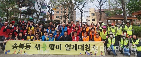 송북동 행정복지센터와 통장협의회는 4월 12일 새봄을 맞이해 대청소에 나섰다.