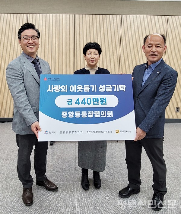 중앙동통장협의회는 4월 11일 중앙동행정복지센터에서 평택행복나눔본부에 성금 440만원을 기부했다.