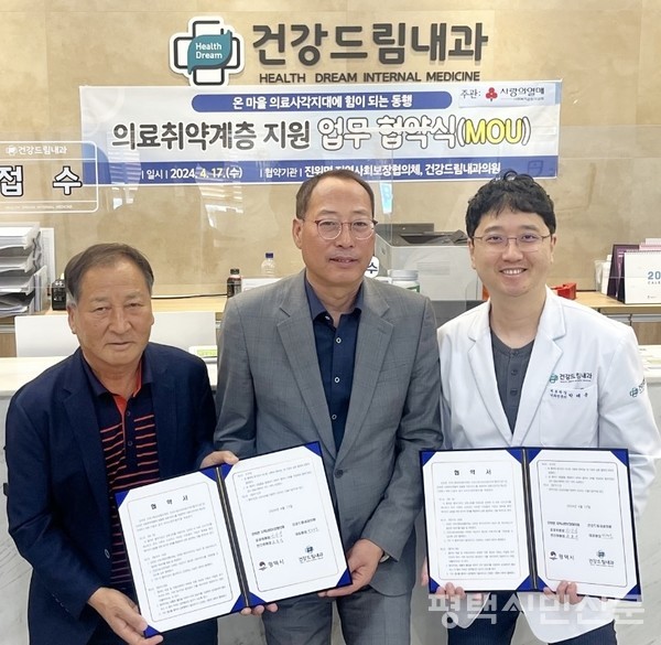 진위면 지역사회보장협의체는 4월 17일 지산동에 소재한 건강드림내과의원과 의료 취약계층에 맞춤형 의료서비스를 제공하는 내용을 업무협약을 체결했다.