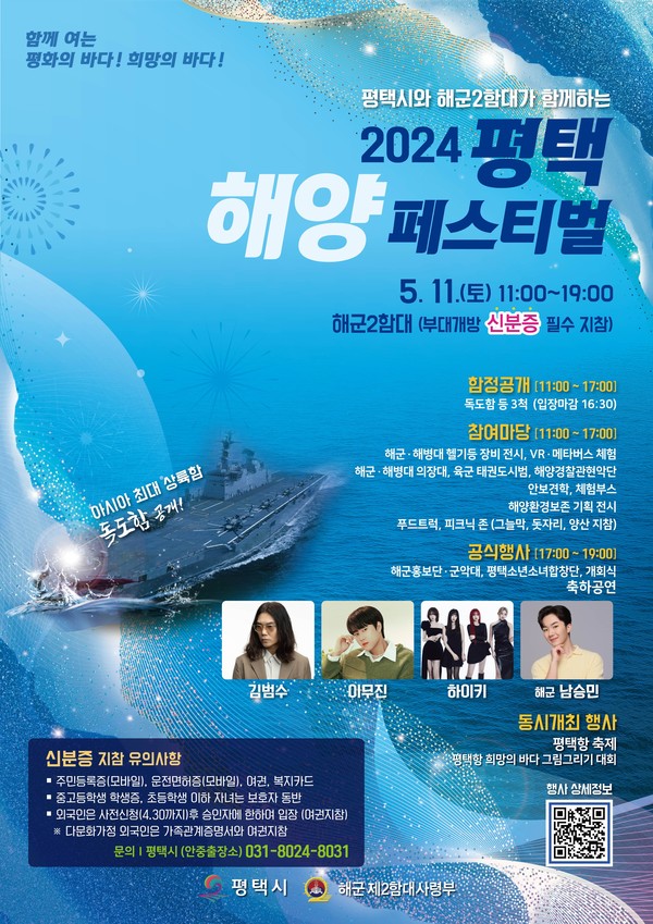 제2회 평택 해양페스티벌이 5월 11일 오전 11시부터 오후 7시까지 포승읍 해군 2함대에서 개최된다.