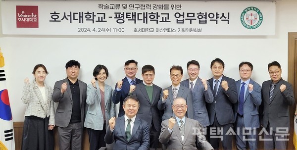 평택대학교는 호서대학교와 학술교류 및 연구협력 활성화를 위한 업무협약을 4월 24일 체결했다.