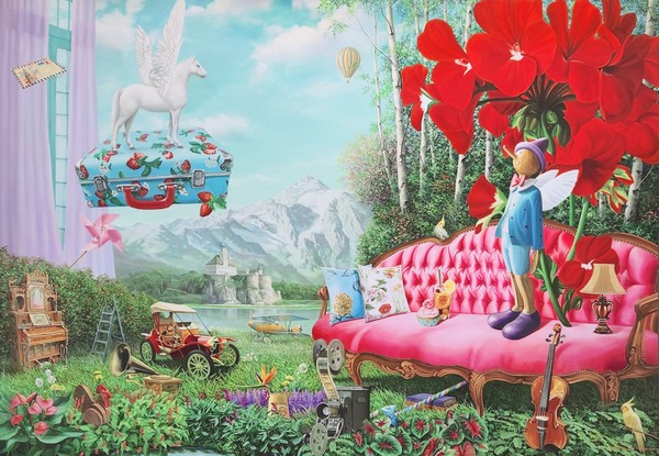 또한 날개가 달린 유니콘, 하늘에 떠 있는 자동차 등 작품 속에 표현된 온갖 사물이 금방이라도 움직일 것 같은 실재감을 전달하며 마치 영화나 드라마 세트장에 온 것 같은 느낌을 주기도 한다.