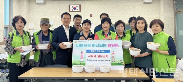 송탄동 지역사회보장협의체는 5월 30일 직접 담근 열무김치를 도시락 밑반찬 특화사업 대상자들에게 전달했다.