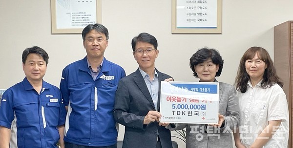 TDK한국㈜은 어려운 이웃을 위해 써 달라며 성금 500만원을 6월 7일 청북읍행정복지센터에 기부했다.