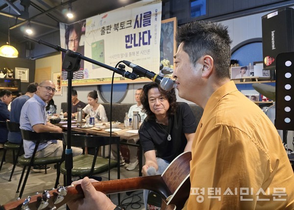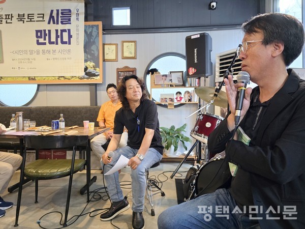 6월 14일 신장동의 한 카페에서 진행된 북토크에는 조창환‧김나영‧이윤훈 등 시인들과 평택문화재단 이상균 대표이사, 최승호 전 민예총 평택지부장 등 지역 지인과 동료 등 30여 명이 함께 했다.