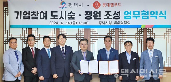 롯데웰푸드와 평택시가 기업 참여 도시숲·정원 조성 업무협약을 6월 14일 맺었다.