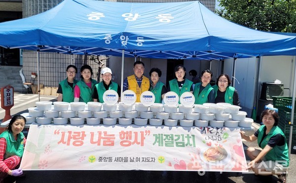 중앙동 새마을부녀회는 6월 12일 중앙동 행정복지센터 앞마당에서 이웃돕기 사랑의 물김치 나눔 행사를 진행했다고 밝혔다.