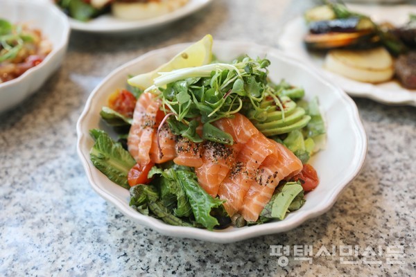 연어 아보카도 샐러드는 주방에서 연어를 통째로 해체해 만든다. 해체한 연어를 적당한 크기로 썰어 다시마와 함께 숙성한다. 숙성 과정을 거친 연어를 먹기 좋은 크기로 썰어 아보카도와 방울토마토 등 각종 채소를 그릇에 담아 내보낸다.