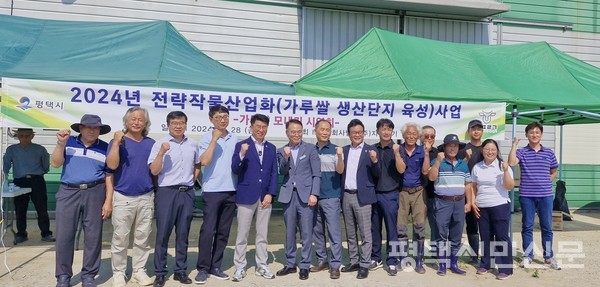 평택시가 정부의 쌀 적정 생산에 발맞춰 조성된 오성면 일원의 가루쌀 생산단지에서 6월 28일 모내기 시연회를 개최했다.