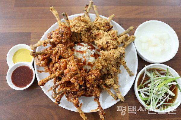 가게 이름이 오리날개튀김이다. 평택에서 오리날개튀김을 파는 유일한 가게이다. 치킨처럼 후라이드와 양념도 있고 후라이드와 양념을 반반씩 섞은 메뉴도 있다.