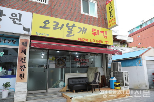 송탄전통시장 인근에 오리날개튀김을 맛있게 하는 곳이 있다. 가게를 찾아가기 위해 지산1로의 구불구불한 골목길을 걸어가다 보면 ‘오리날개튀김’ 문구가 커다랗게 적힌 노란 간판을 마주하게 된다. 가게 앞에 다다를수록 고소한 튀김 향이 후각을 자극해 식욕을 돋운다.