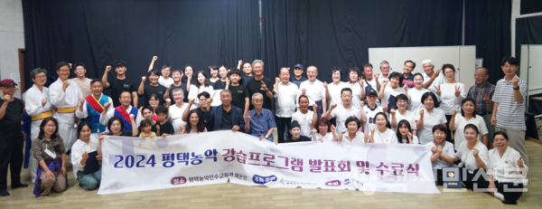 평택농악보존회가 7월 12일 평택농악전수교육관에서 2024년 평택농악 강습프로그램 상반기 발표회·수료식을 열었다.