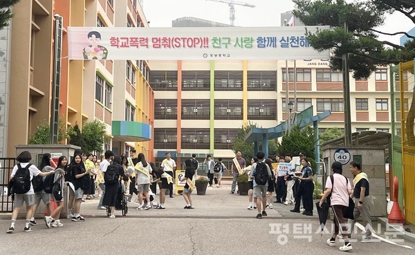 평택교육지원청은 7월 11일 장당중학교에서 ‘학교폭력제로 등굣길 캠페인’을 진행했다.