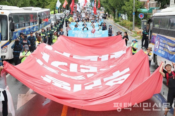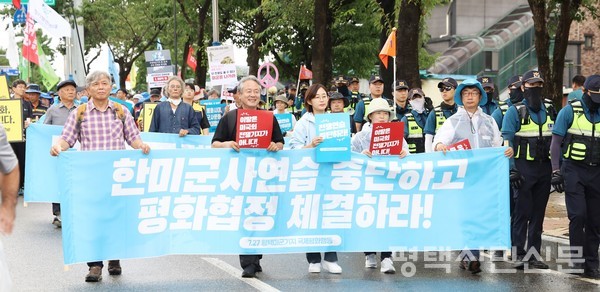 휴전협정이 맺어진 지 71년이 되는 날인 7월 27일 평택 미군기지 일대에서 ‘평택미군기지 국제평화행동대회’가 열렸다.