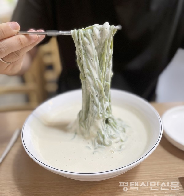 클로렐라 넣은 탱글한 면발 고소하고 부드러운 콩물