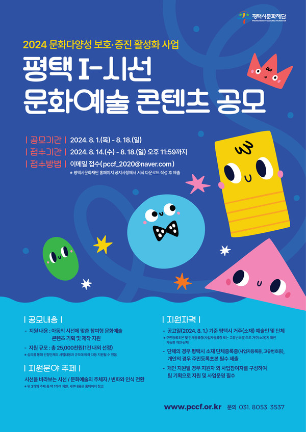 재단법인 평택시문화재단은 ‘평택 I-시선 문화예술 콘텐츠 공모’를 8월 14~18일 진행한다.