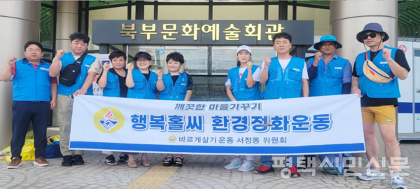 바르게살기운동 서정동위원회는 7월 27일 여름철 무더위에도 평택북부문예회관 근처에서 무단으로 버려진 각종 생활 쓰레기 등을 일제히 수거하고 주변을 정리하는 등 환경정화 활동을 진행했다.