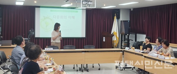 이날 협의체 위원 13명이 참석한 가운데 유진이 평택대학교 아동청소년 교육상담학교 교수를 초청해 다문화가정이 많은 신장1동의 특성에 맞춰 다문화가정에 대한 이해를 넓힐 수 있도록 역량 강화 교육을 진행했다.